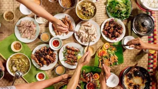 越南人常吃的主食为大米、糯米、各种青菜、豆、水果和越南各地区的山珍海味特产。越南食品从简单的点心如米粉、粉丝、面汤、糯米饭、糖水至家庭饭中的红烧、汤、炒、凉菜等。